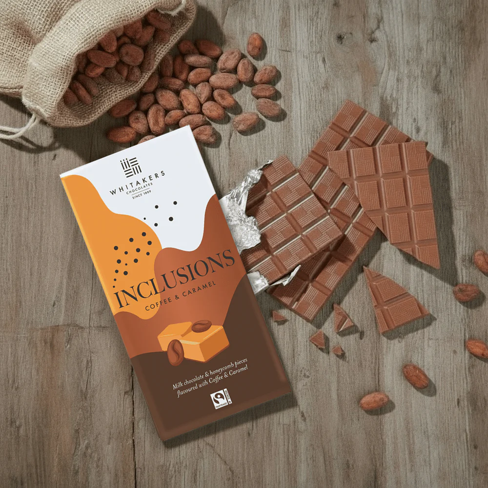 - Ciocolată cu lapte și aromă naturală de cafea și caramel